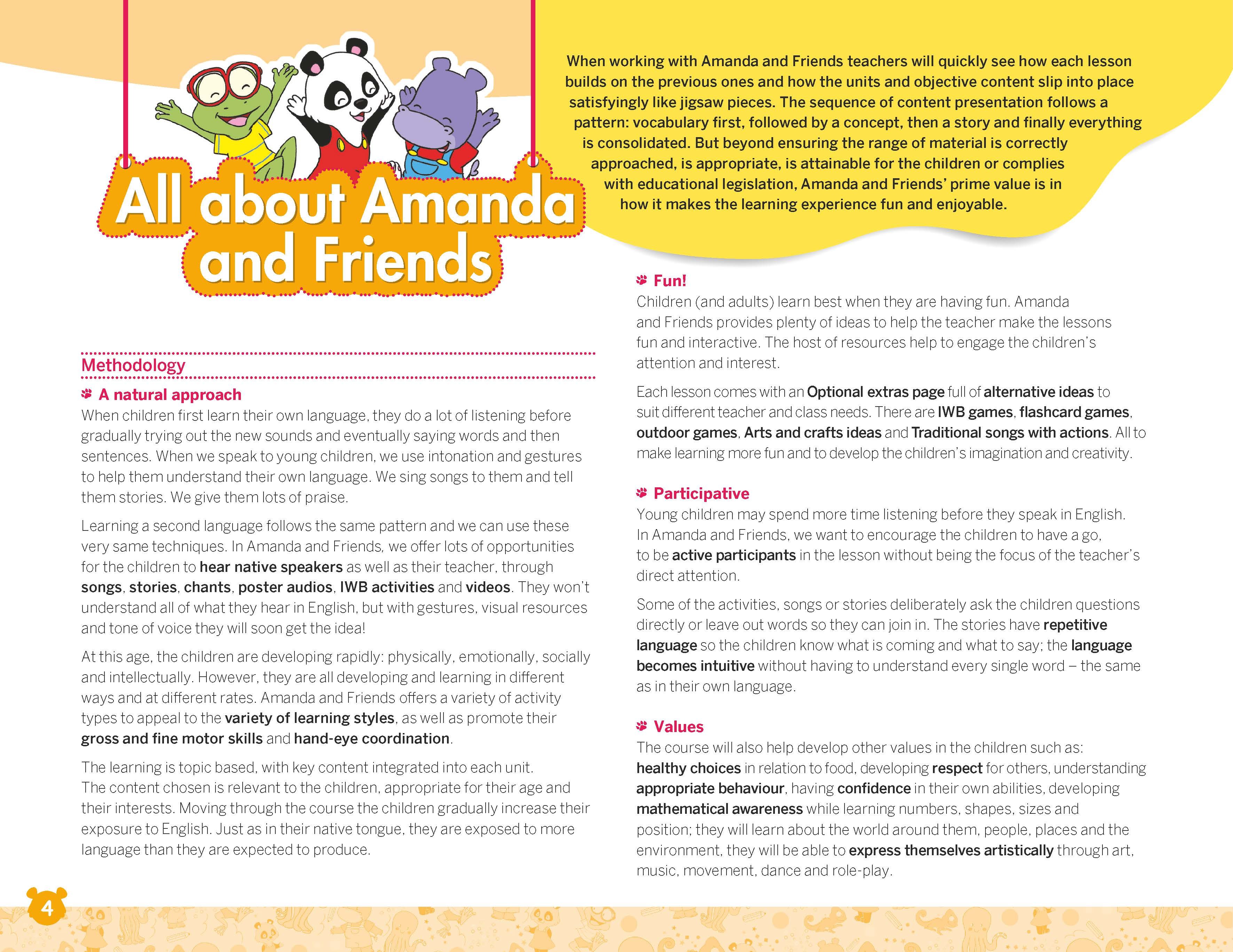 Amanda & Friends is a new three-level preschool series that aims at exposing the students to English following a natural approach. It has been evaluated and approved by the Department of education and Training according to Official Dispatch 2441/GDĐT-MN.