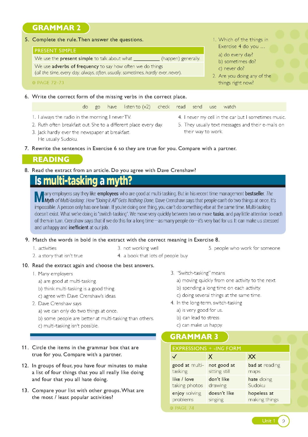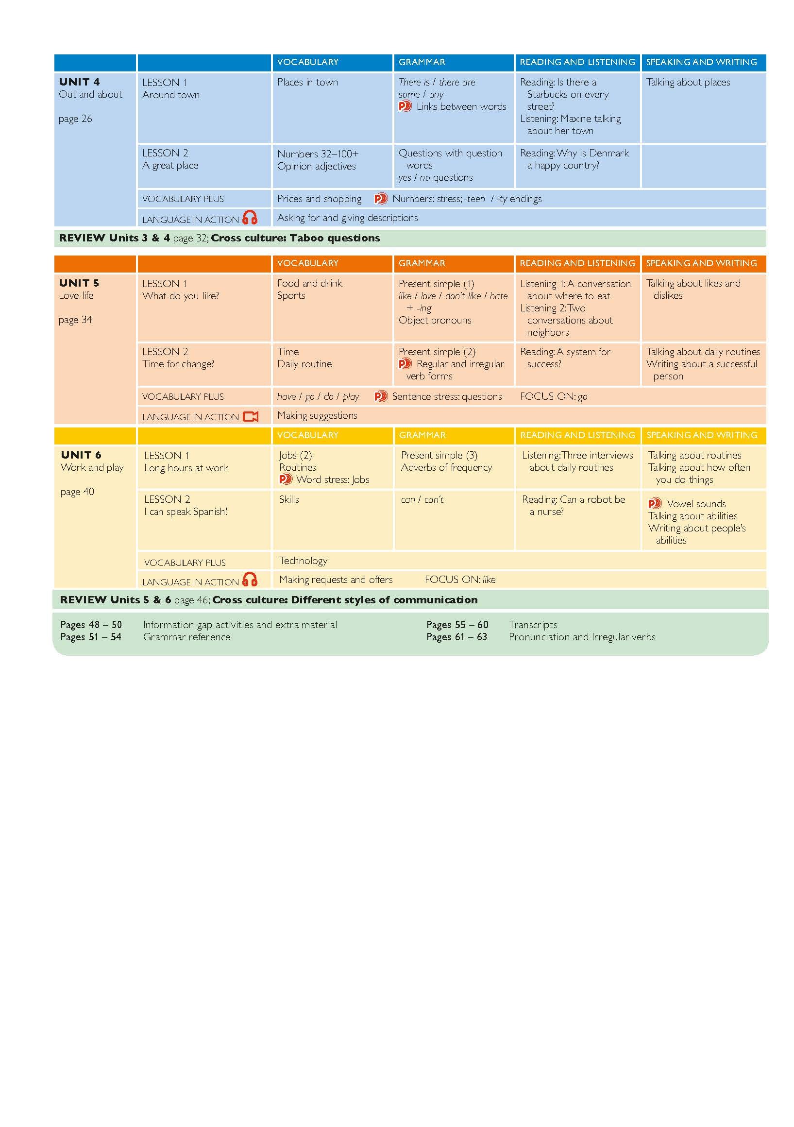 Workbook with revision and practice, progress checks and writing skills development