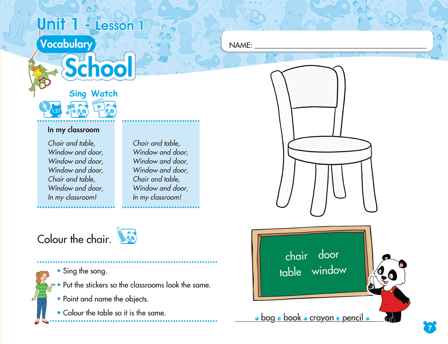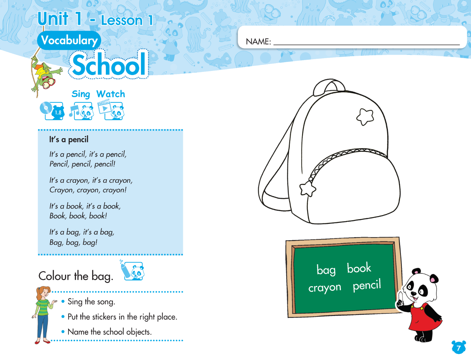 The learning is topic based, with key content integrated into each unit. The content chosen is relevant to the children, appropriate for their age and their interests. Moving through the course they will gradually increase their exposure to English