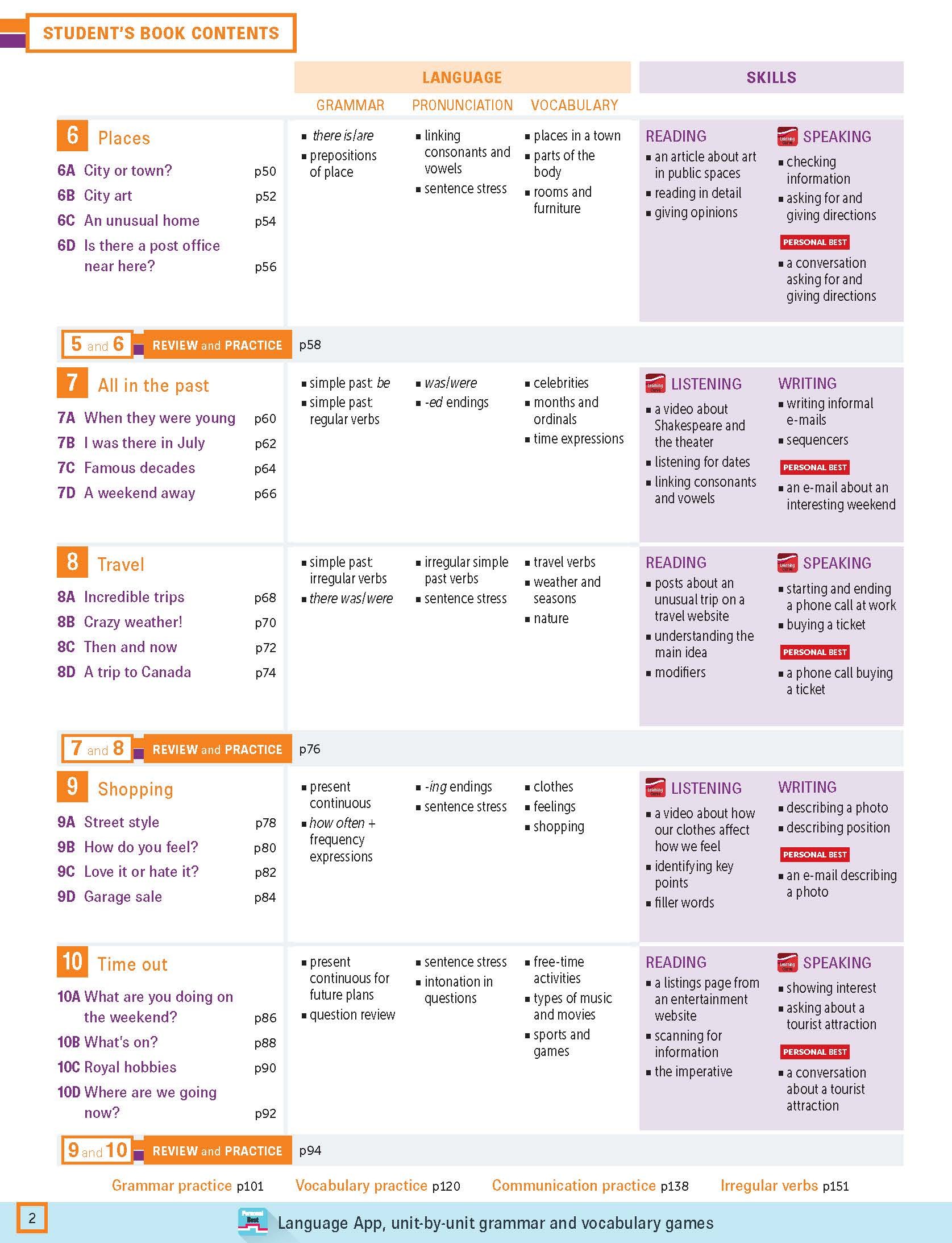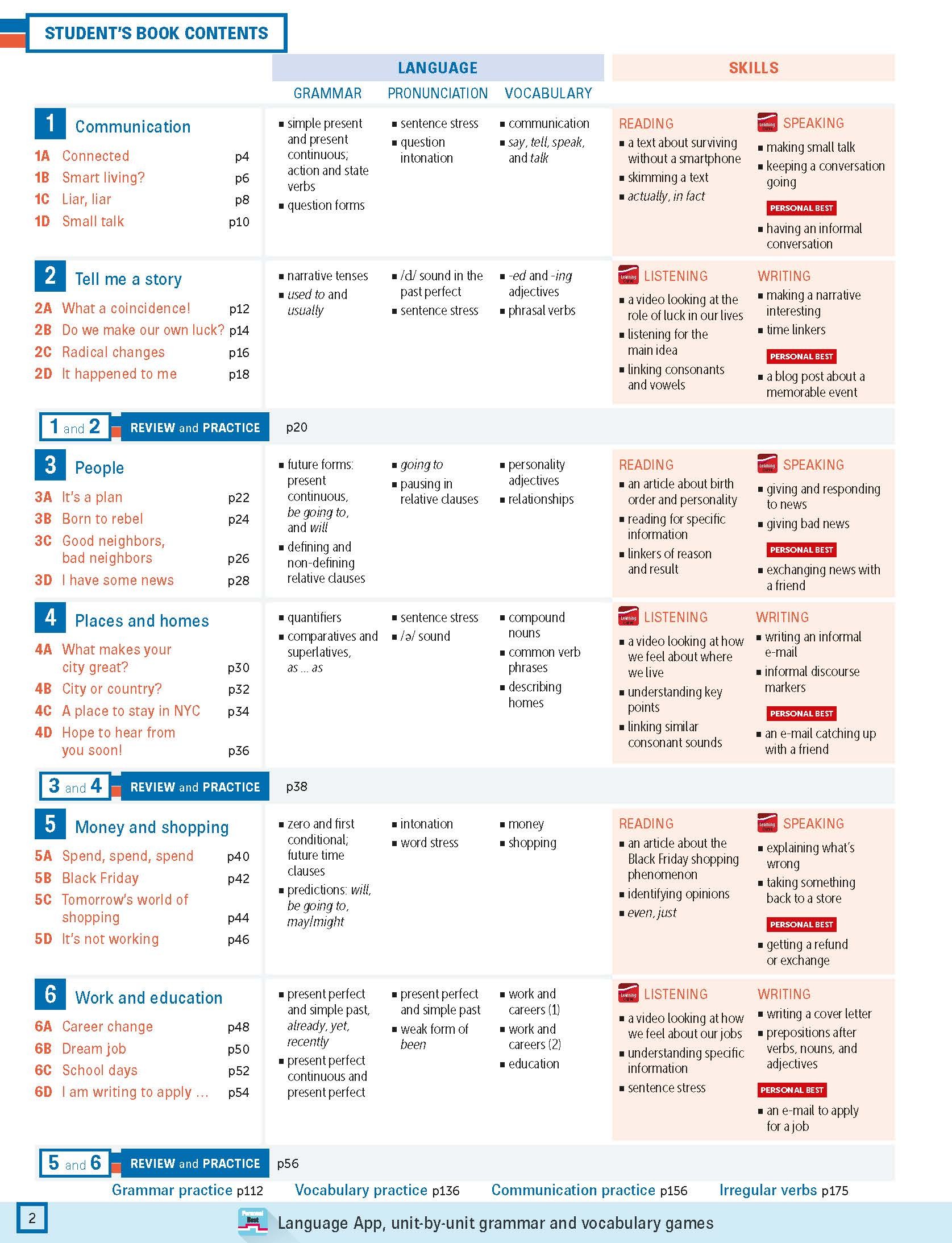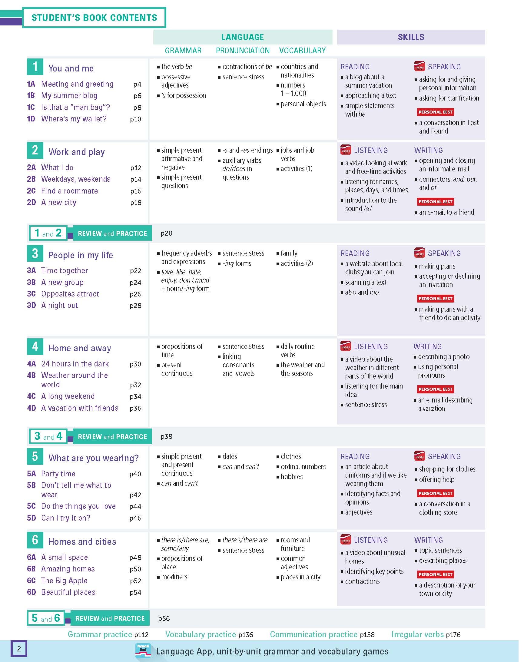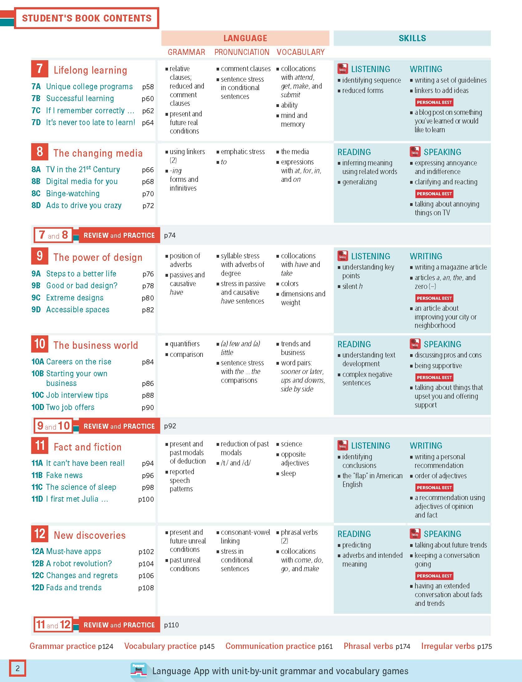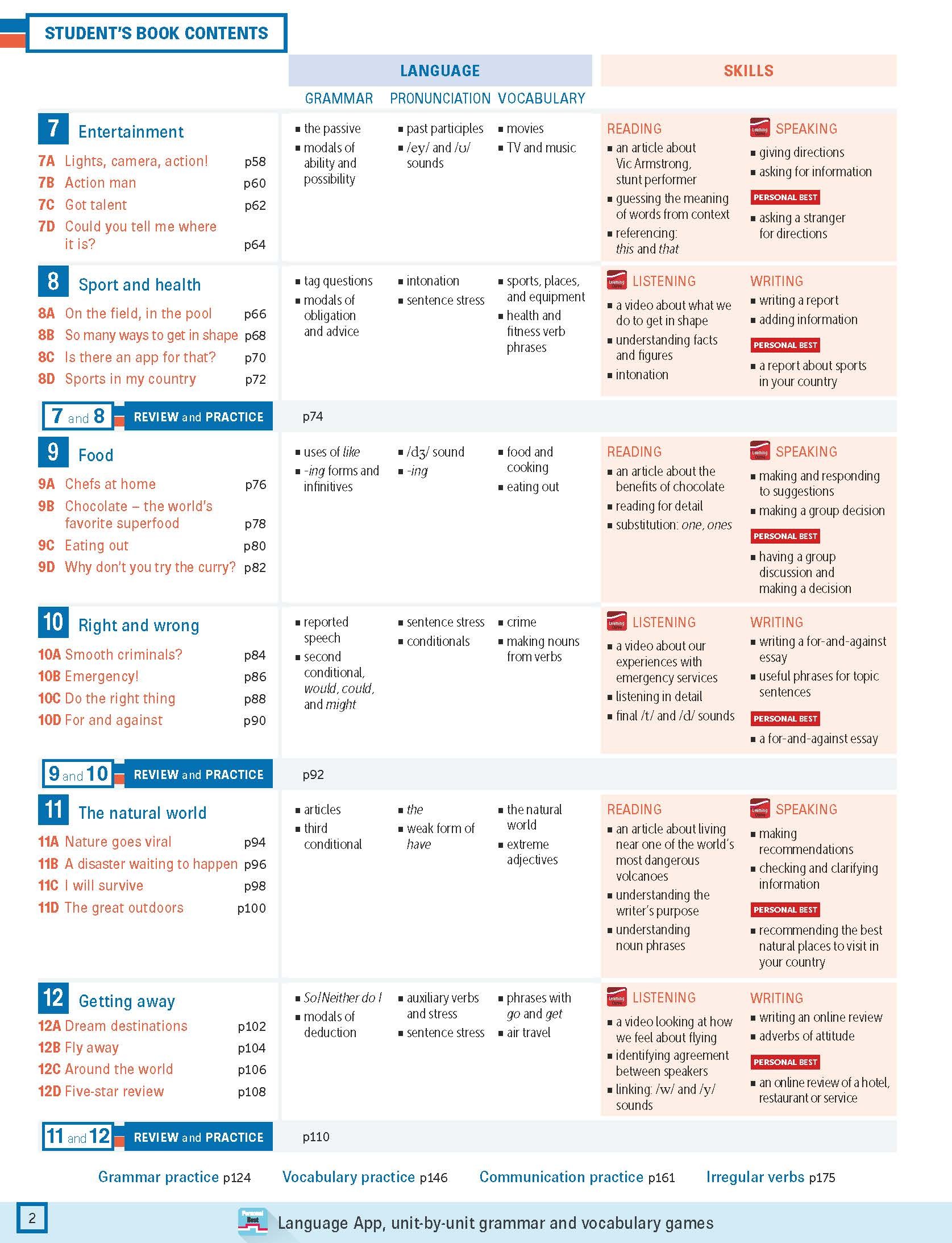 For the breadth of one language point, teachers and students can find the practice exercises in Student’s Book, Workbook, Teacher Resource Pack, Personal Best App
