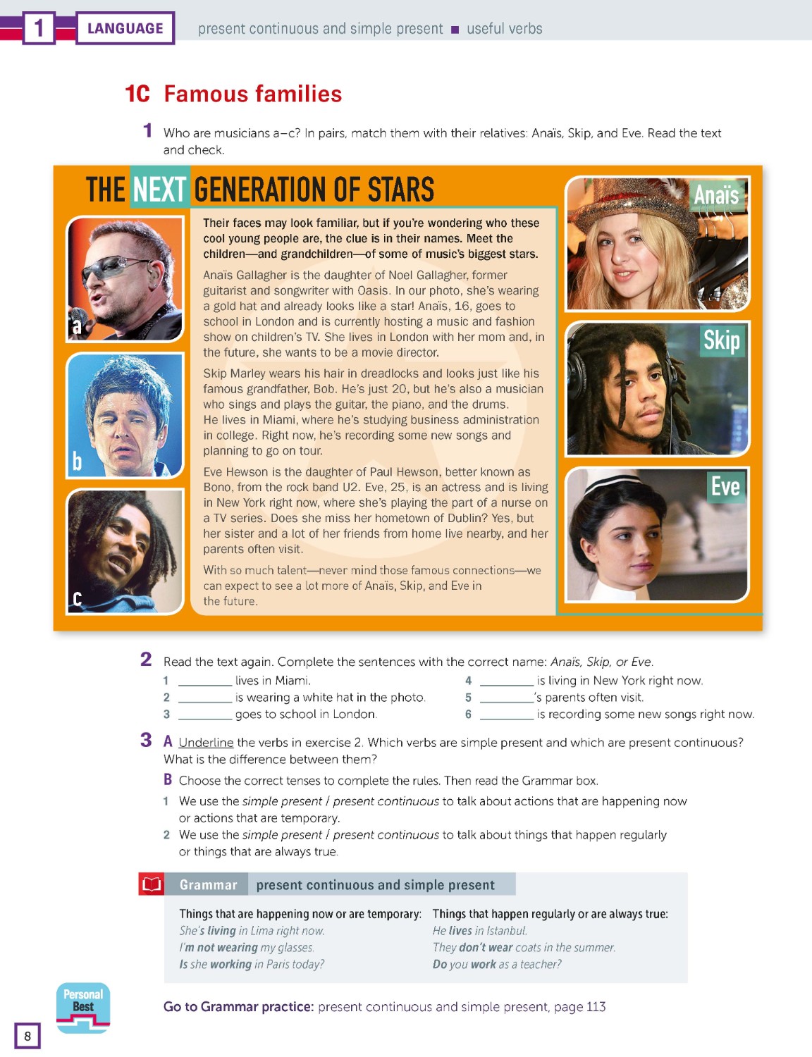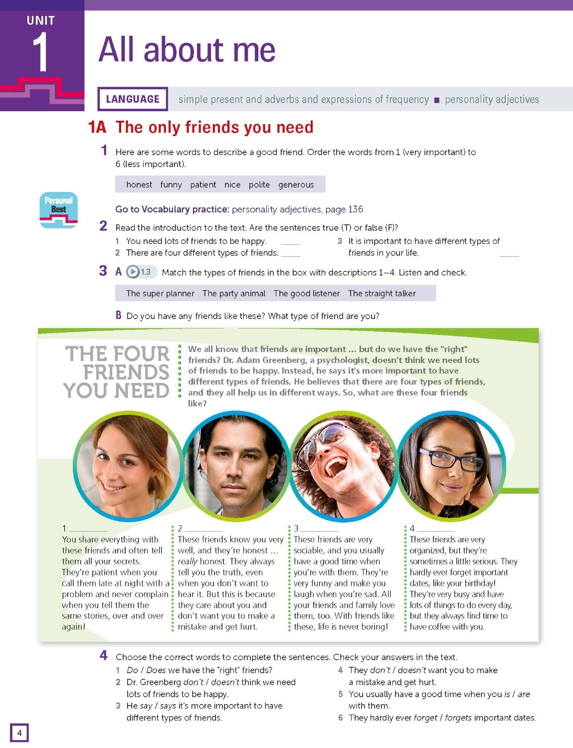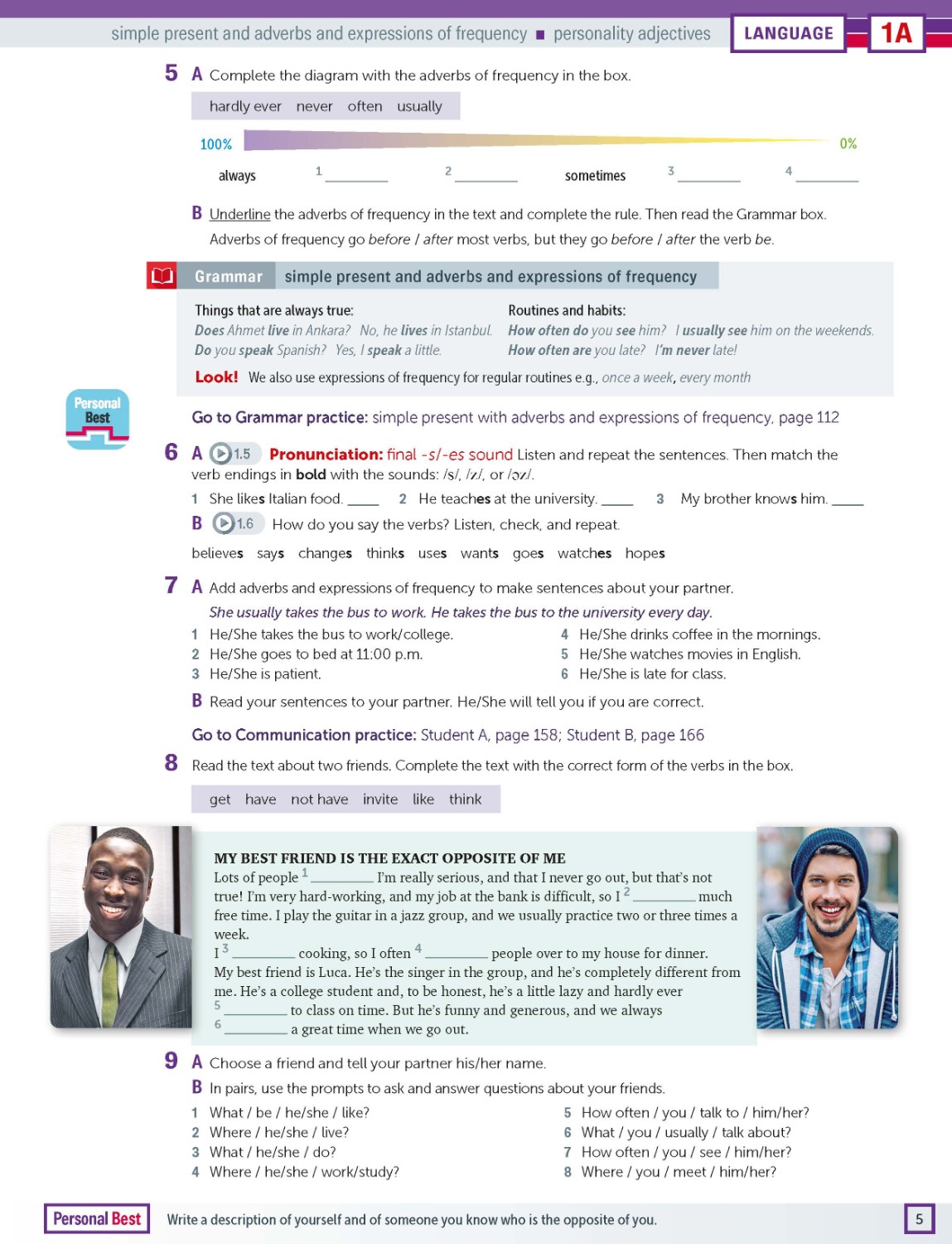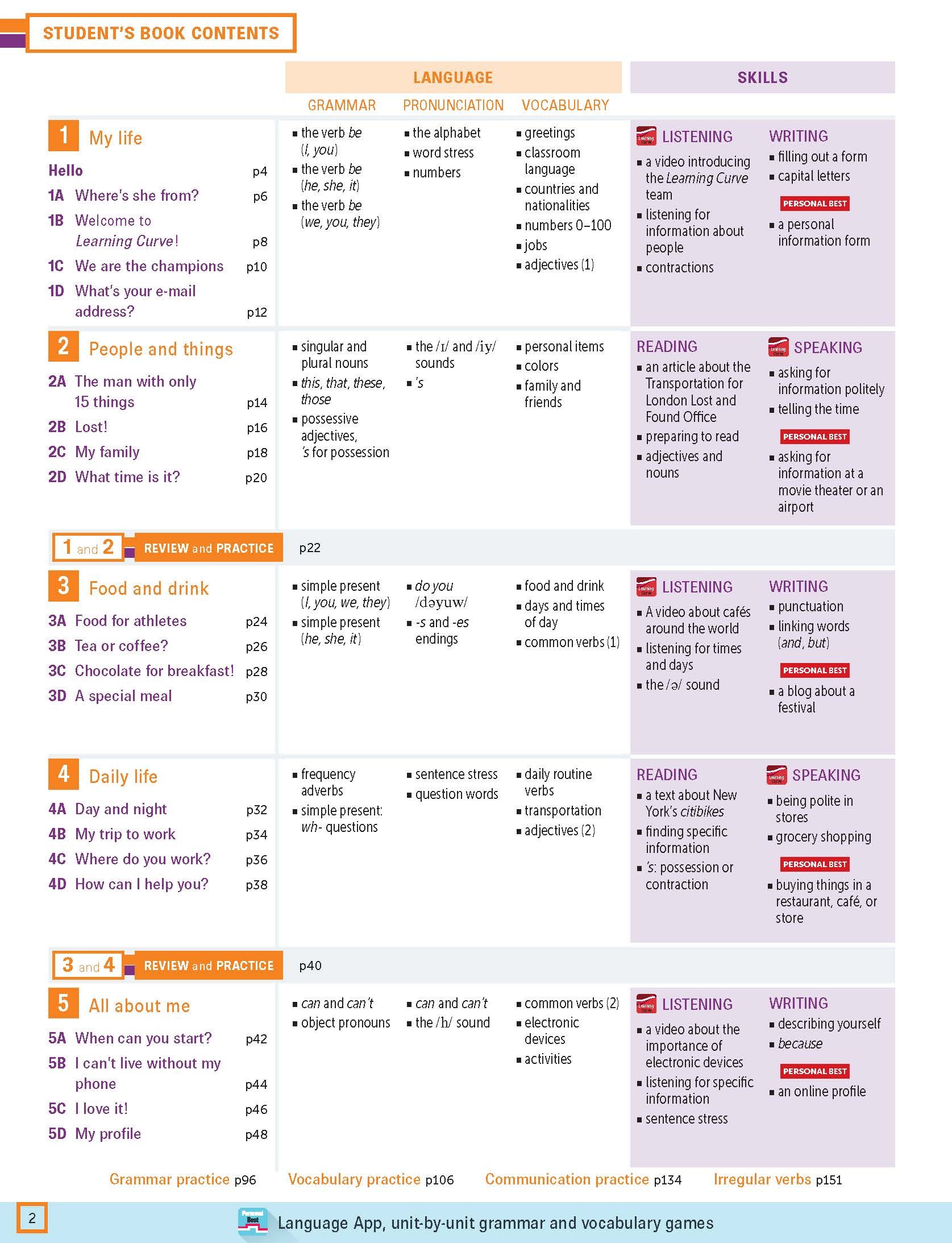 For the breadth of one language point, teachers and students can find the practice exercises in Student’s Book, Workbook, Teacher Resource Pack, Personal Best App