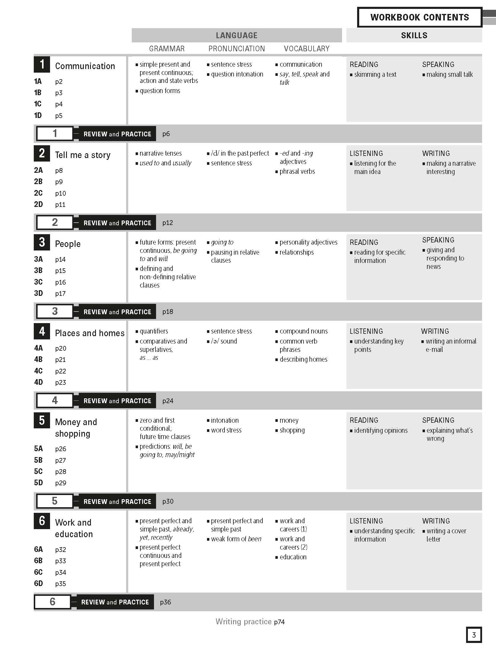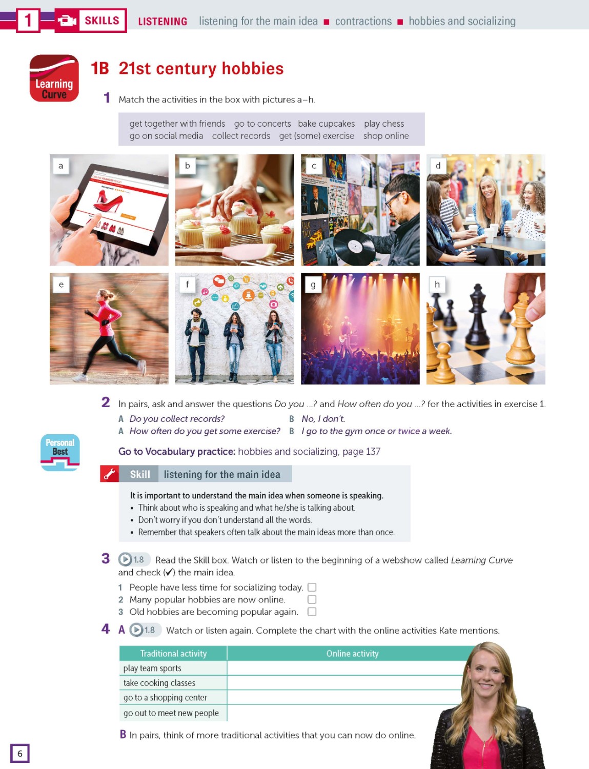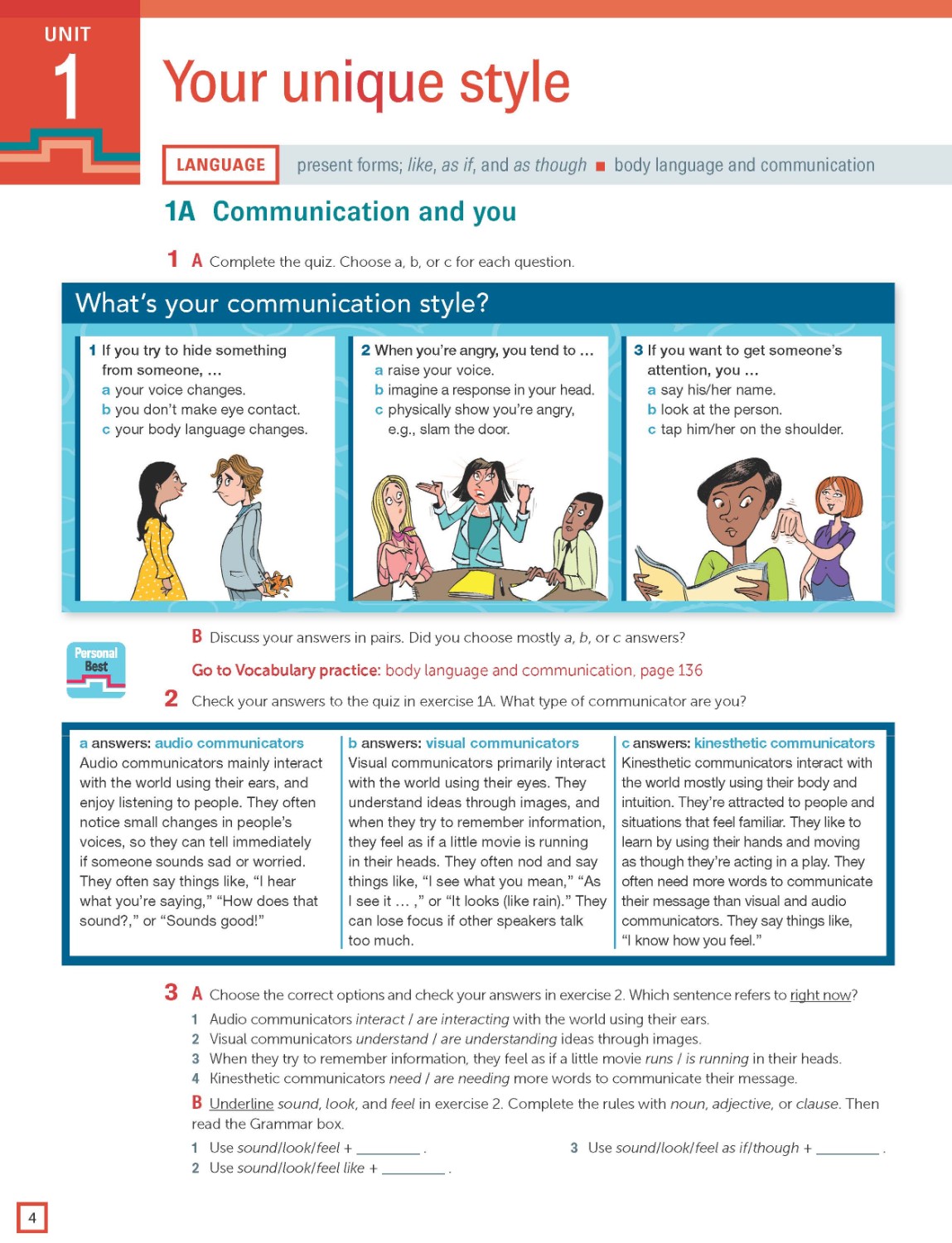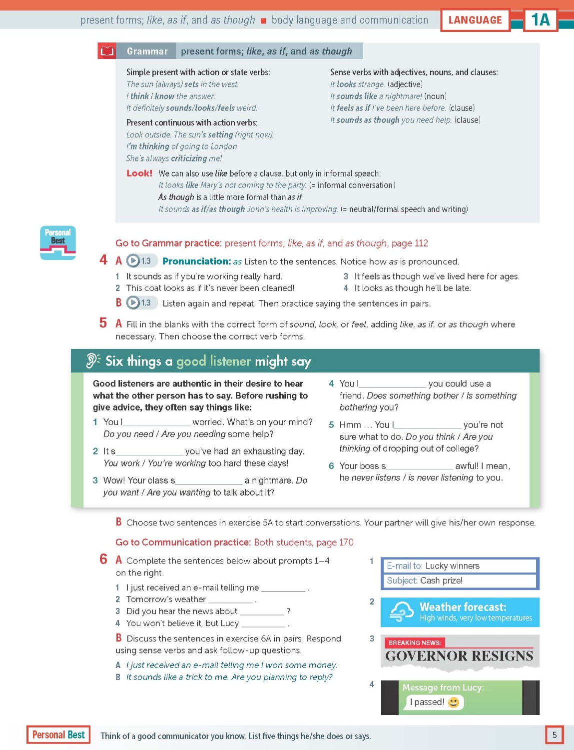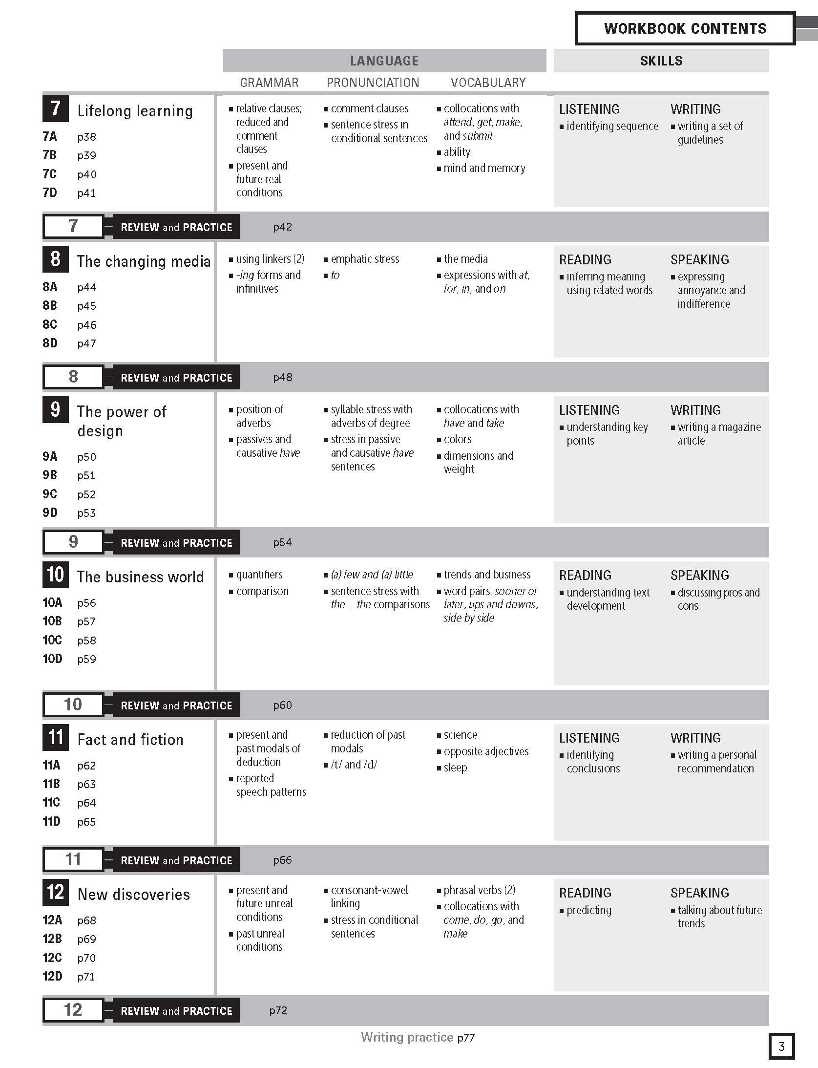Reading and listening pages are designed to develop learners' skills and strategies