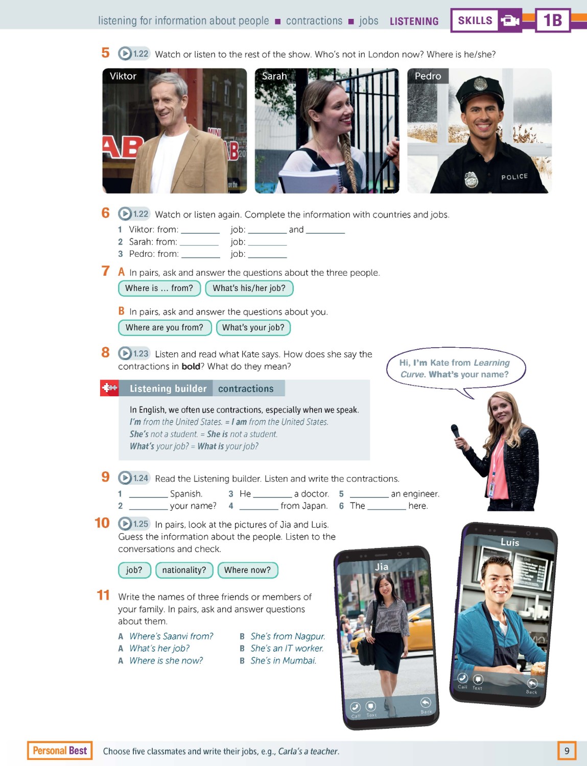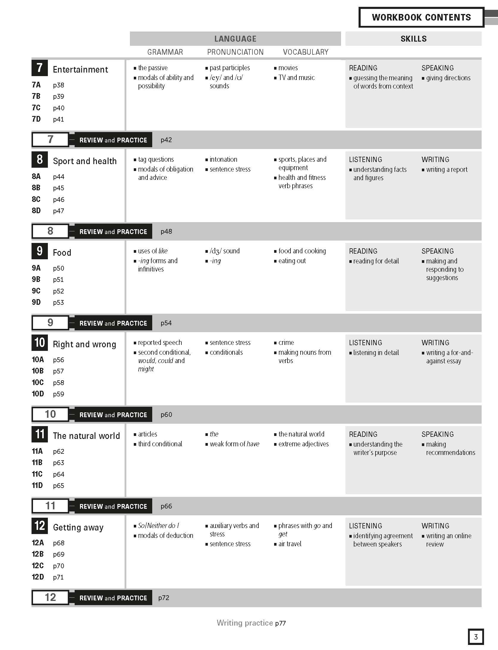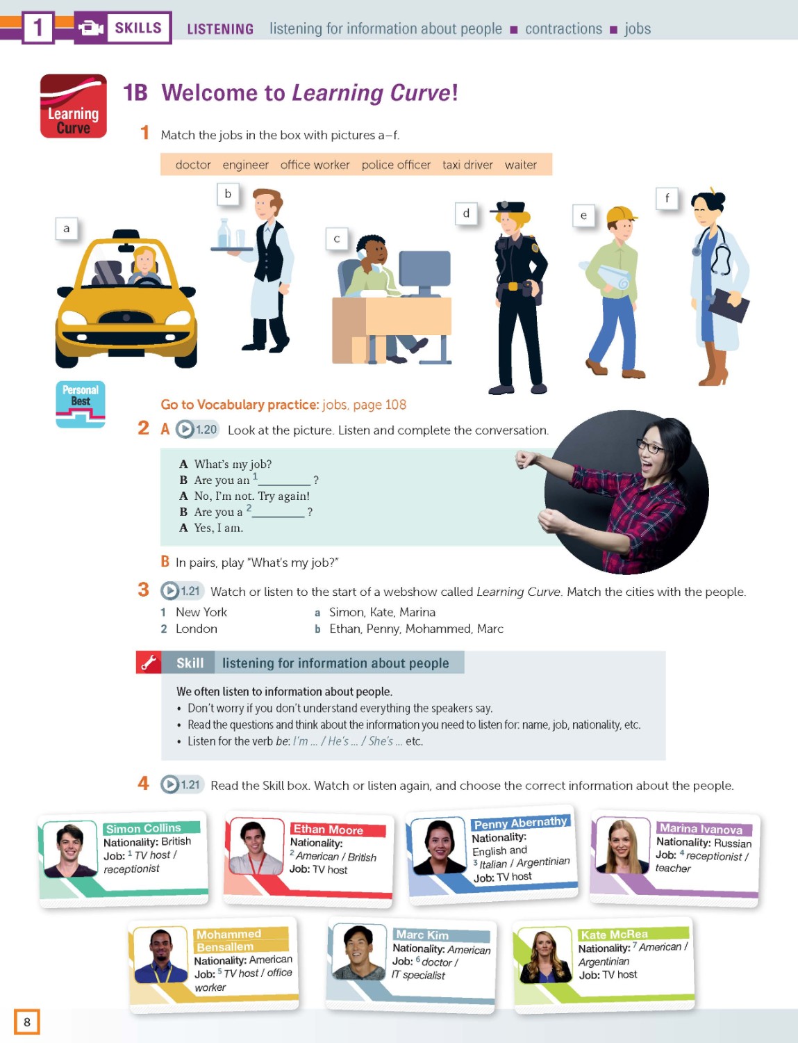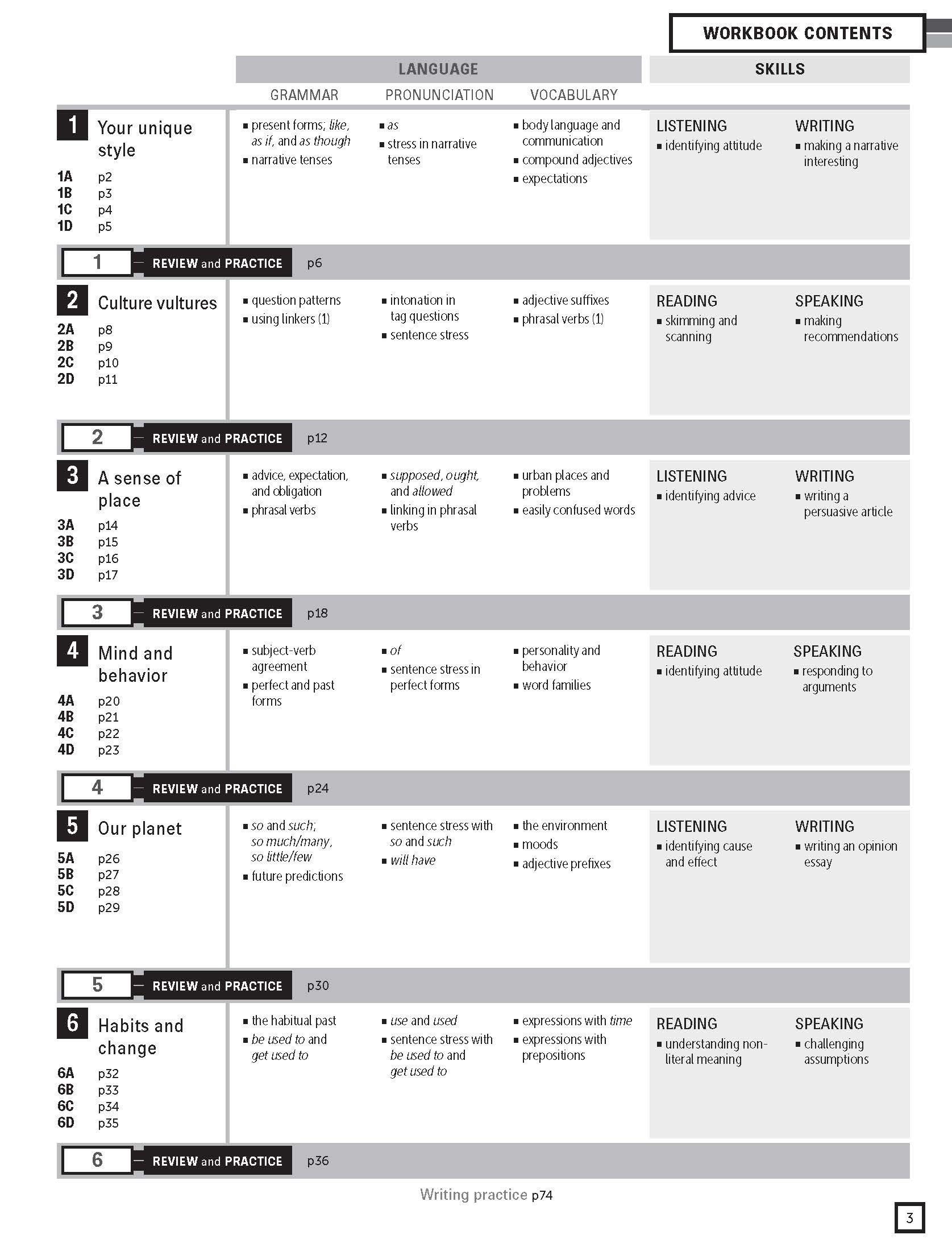 Reading and listening pages are designed to develop learners' skills and strategies