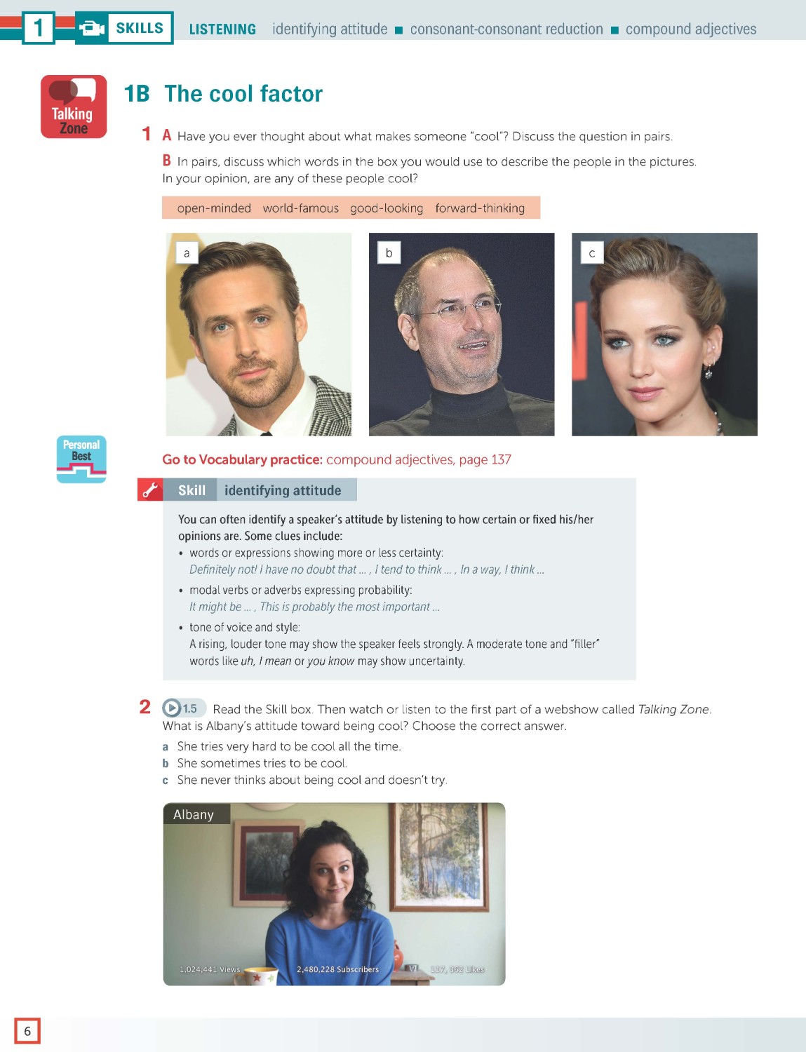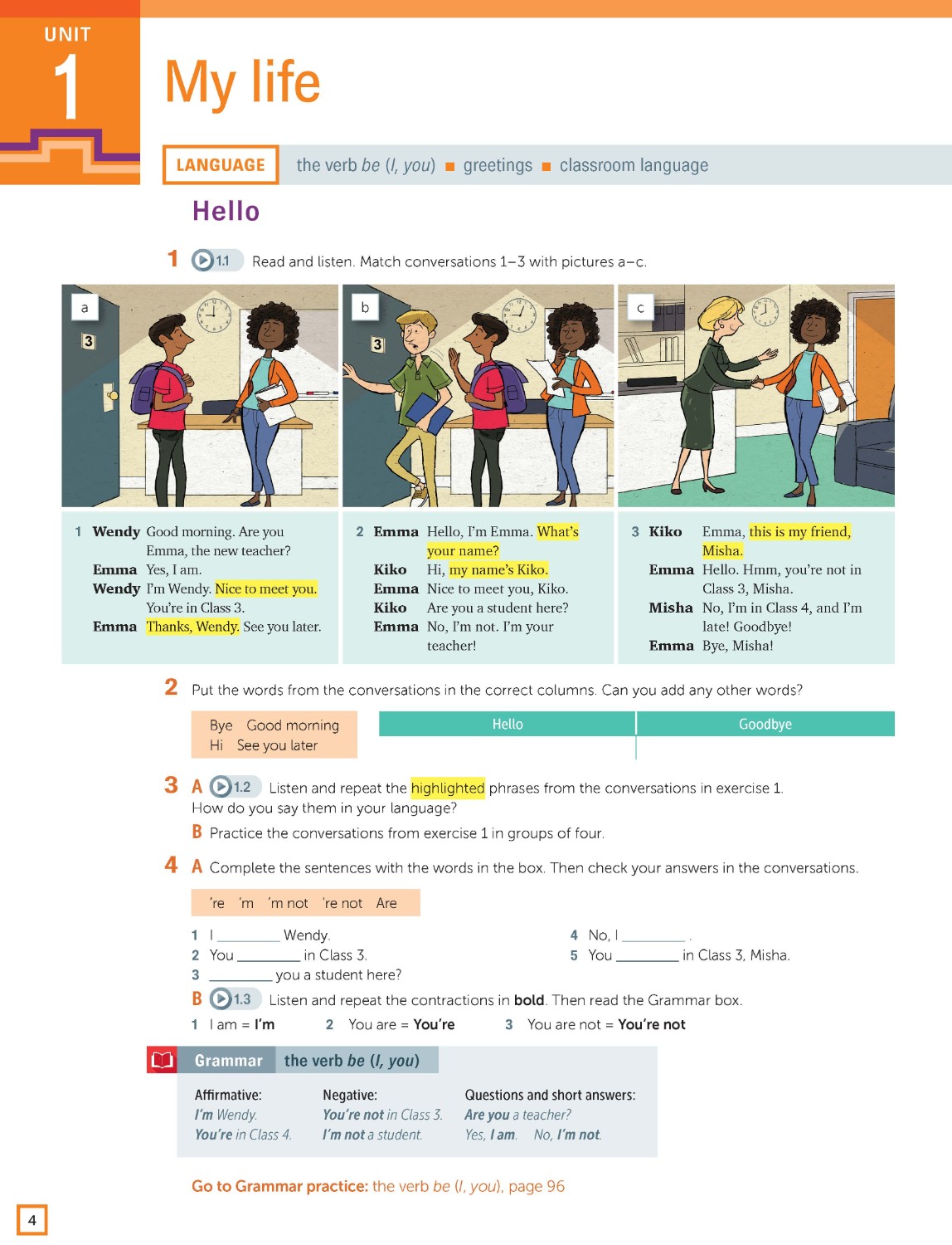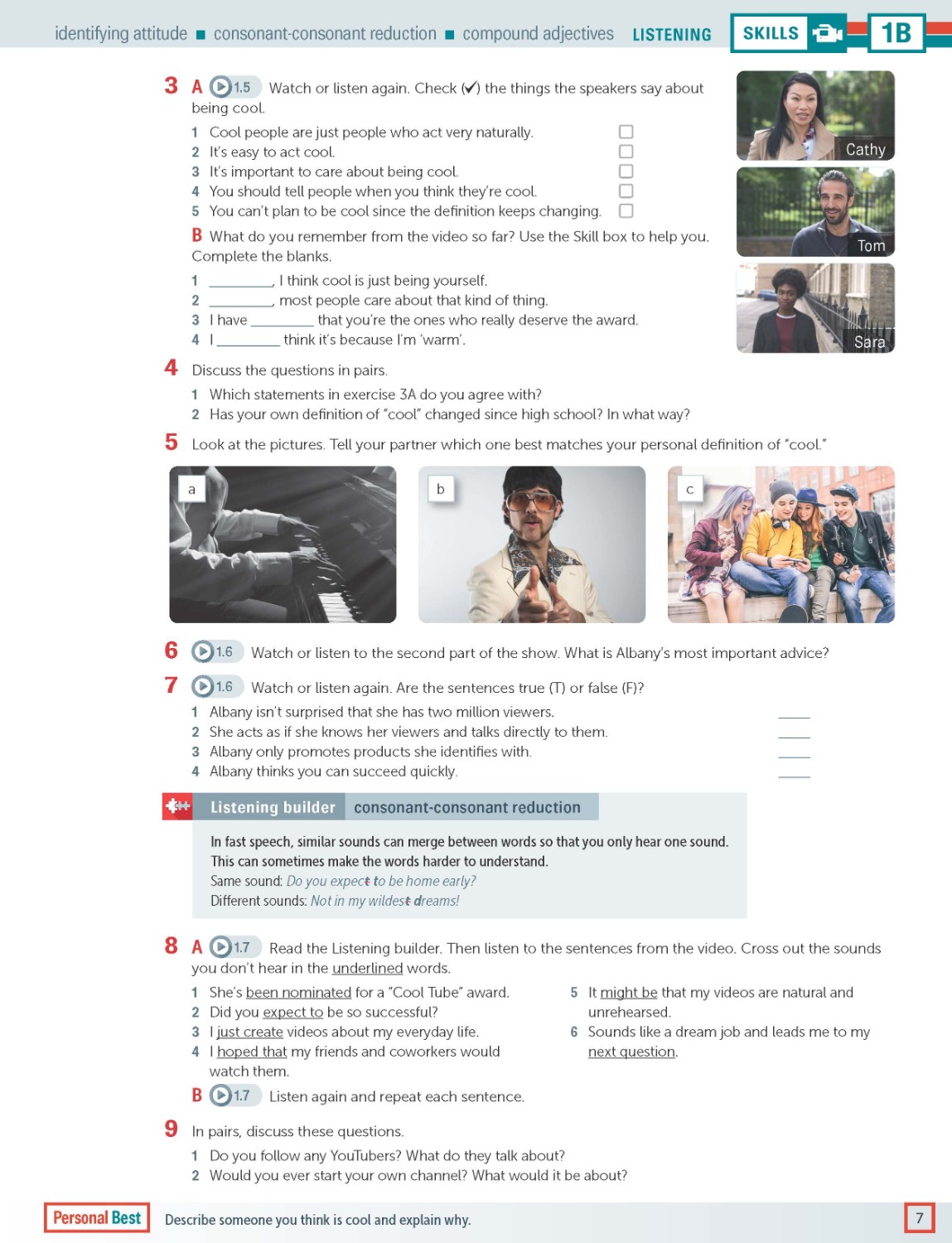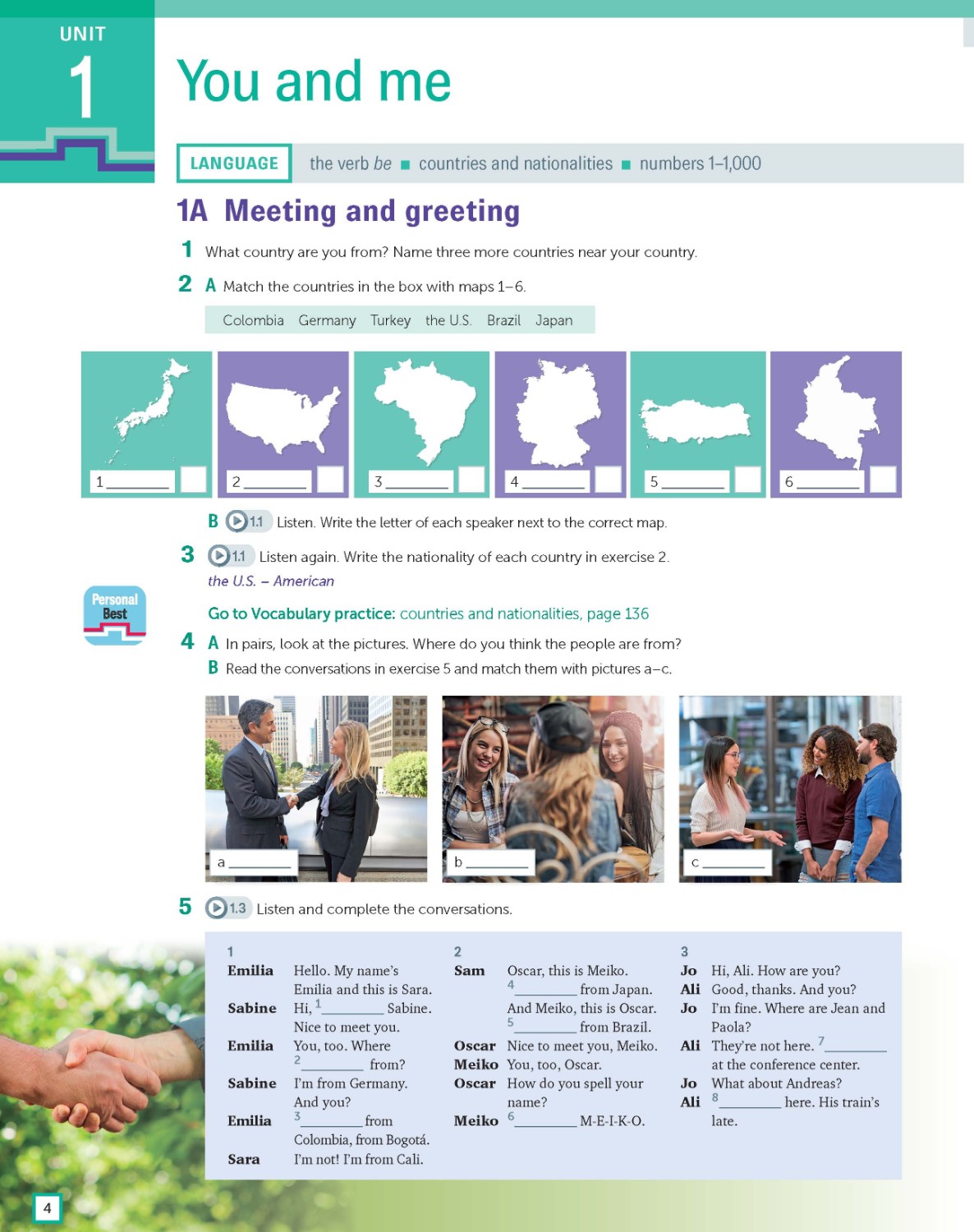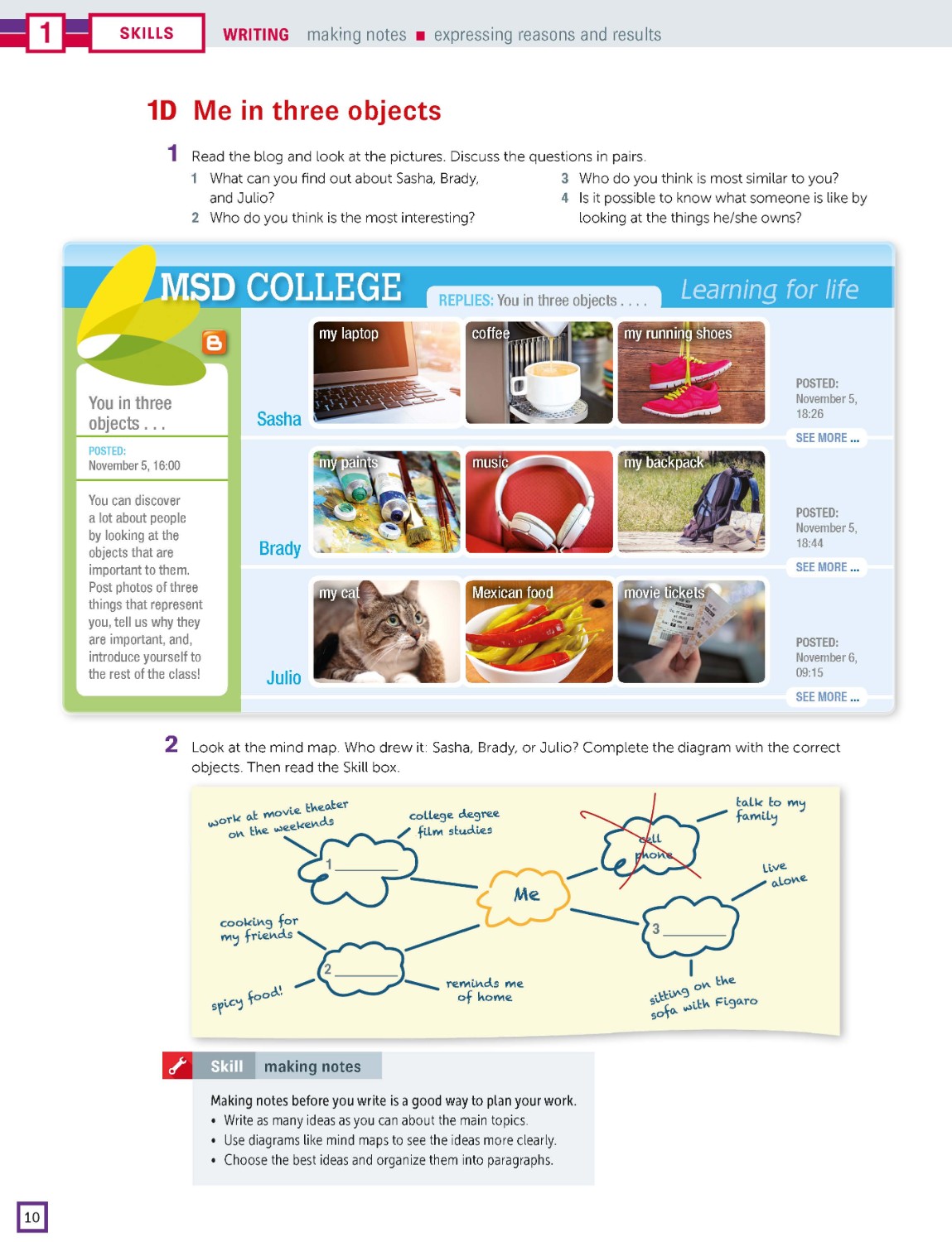 Reading and listening pages are designed to develop learners' skills and strategies