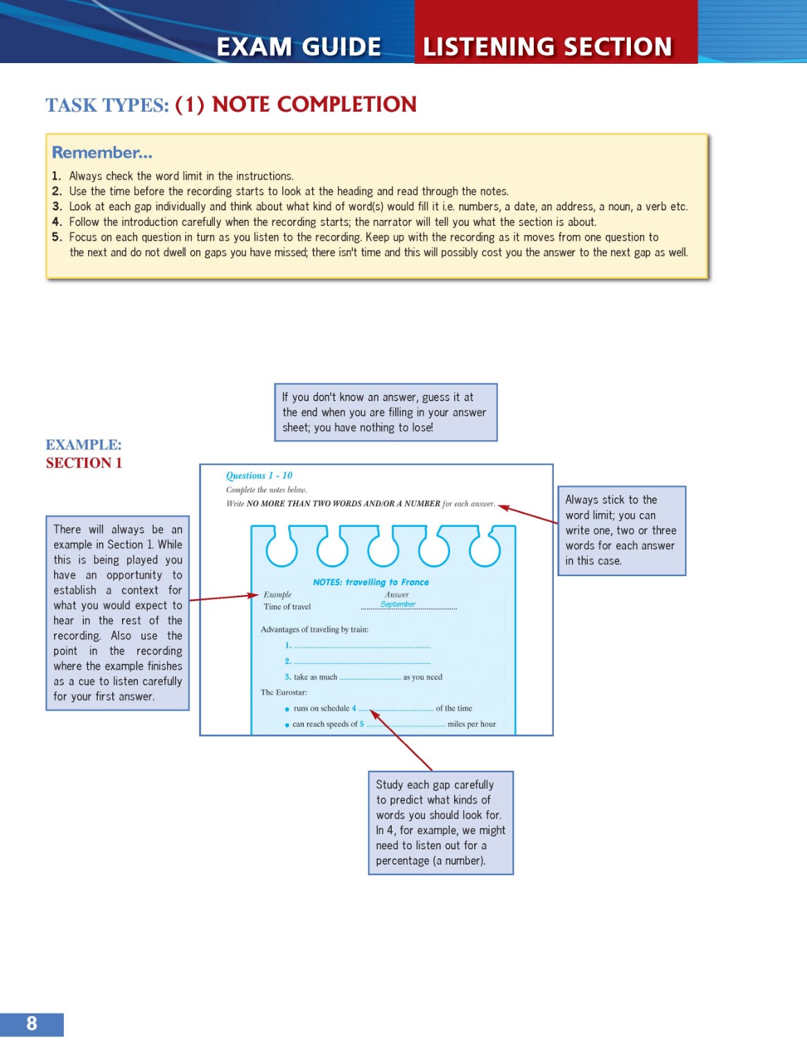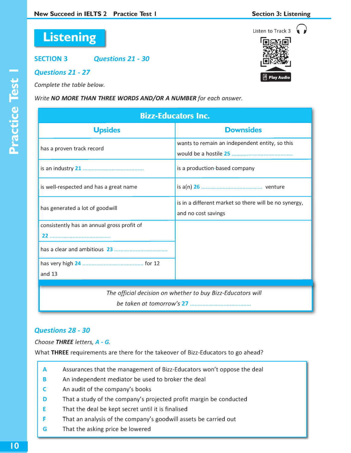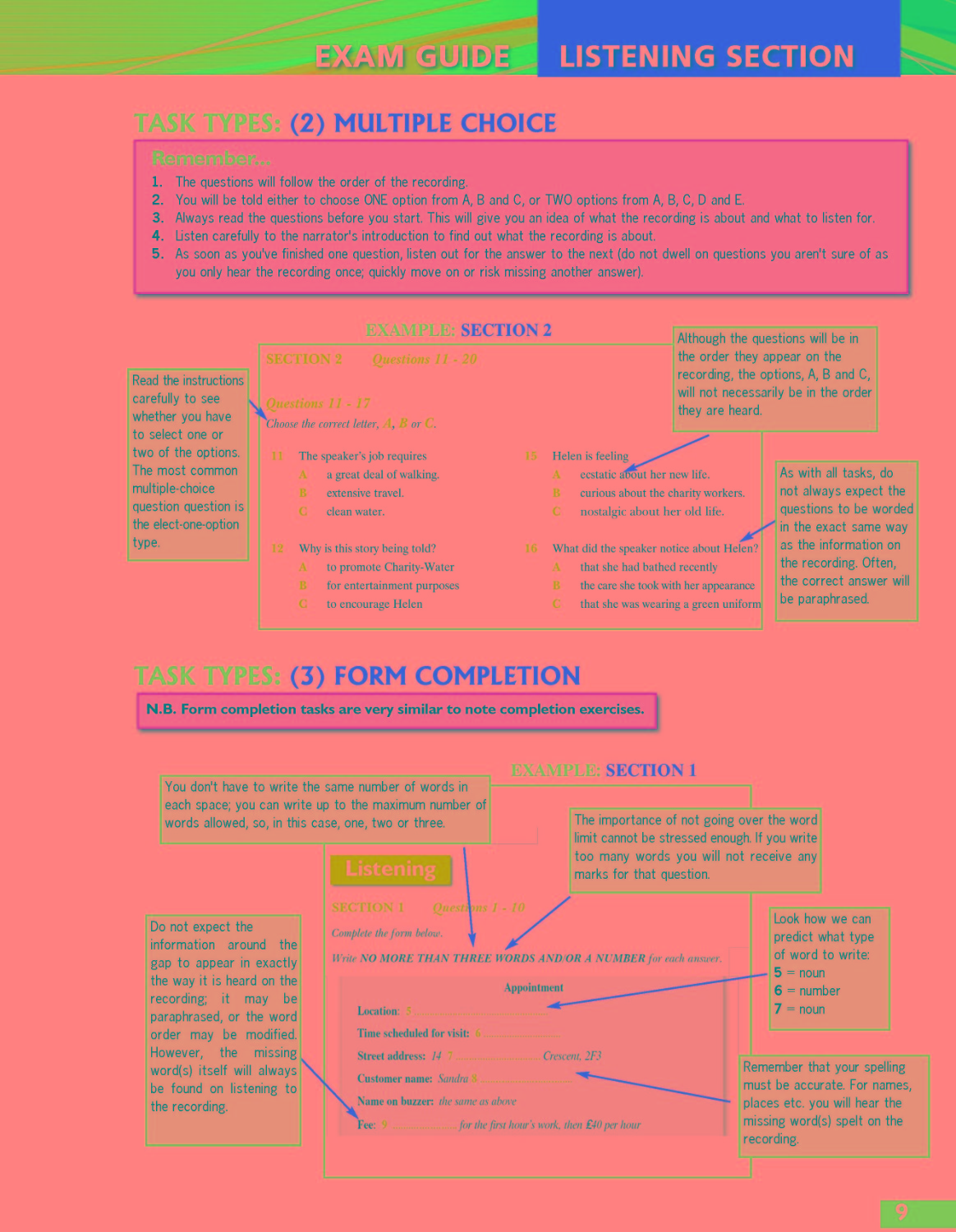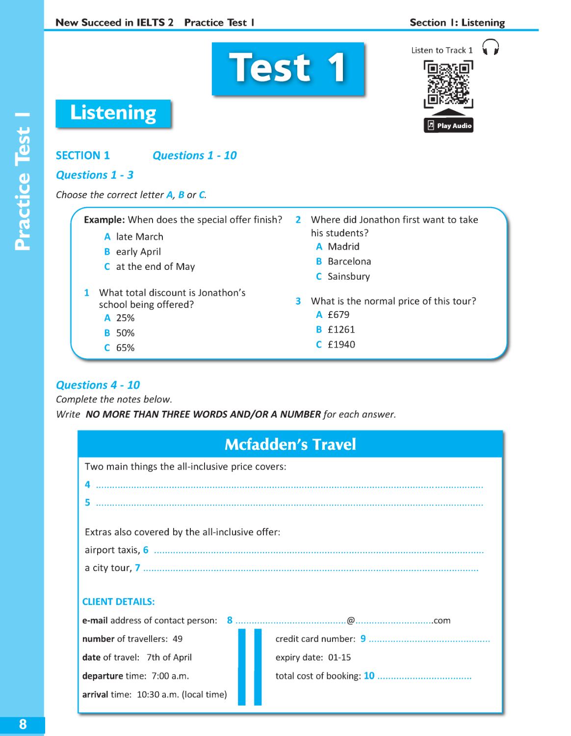 Self-study Guide with justification for answers for Listening and Reading; Writing Supplement including model answers and example answers by candidates at varying levels, followed by explanations of the marks awarded; and Audio scripts and answer keys