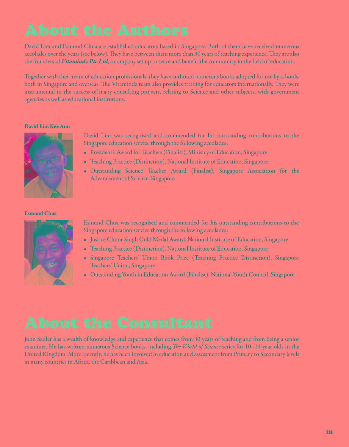 Comes with comprehensive coloured Teacher's Guides that include engaging and effective lesson plans, schemes of work, and additional resources such as consolidated worksheets, fun & games, and exam pratices. The Teacher's Guides provide a page by page guide to our Textbook and Workbook to enhance teachers' delivery in th classroom